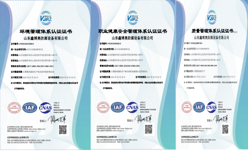 通過了ISO9001質量管理體系、ISO14001環(huán)境管理體系、ISO45001職業(yè)健康安全管理體系三體系認證。